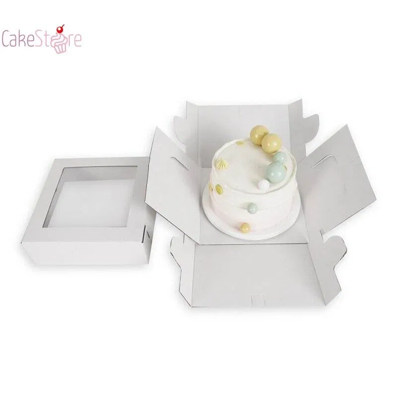 25,4 x 25,4 x 30,5 cm – Tortenbox, weiß mit Sichtfenster