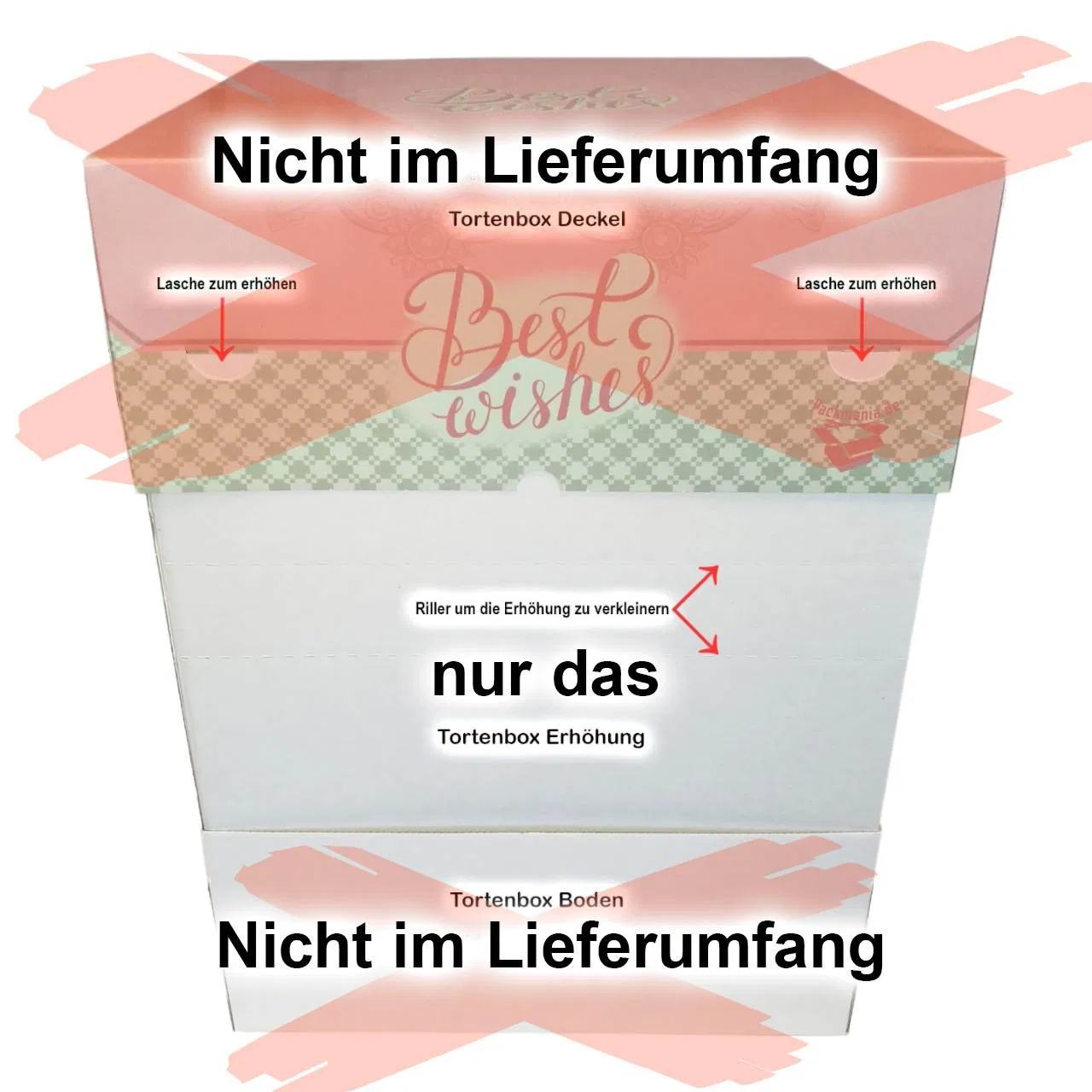 Sie erwerben nur den Teil, der zwischen Boden und Deckel kommt. Die Tortenbox, (Boden und Deckel) müssen Sie separat kaufen.