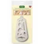 Anwendung: Geben Sie den Fondant großzügig in die Form. Anschließend entfernen Sie den überschüssigen Fondant, so dass Sie die Umrisse des Motivs erkennen können. Drehen Sie die Form nun um und lösen Sie das Material vorsichtig heraus. Zur einfacheren Entnahme pudern Sie die Form vor der Verwendung mit etwas Bäckerstärke.