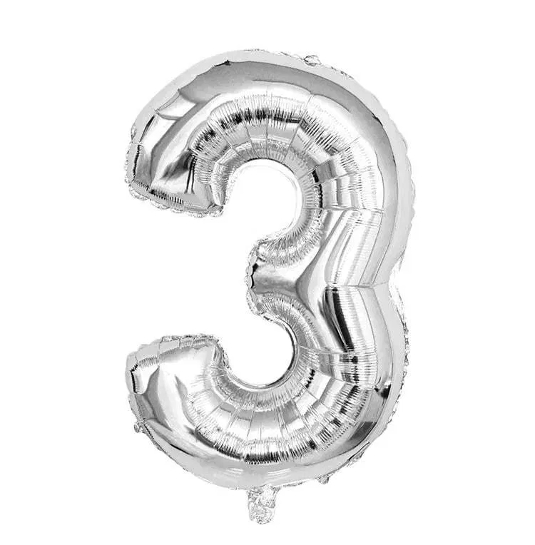 Die Zahl “3” als Luftballon in silber. Für eine Füllung mit Helium geeignet. Mit integriertem Ventil.