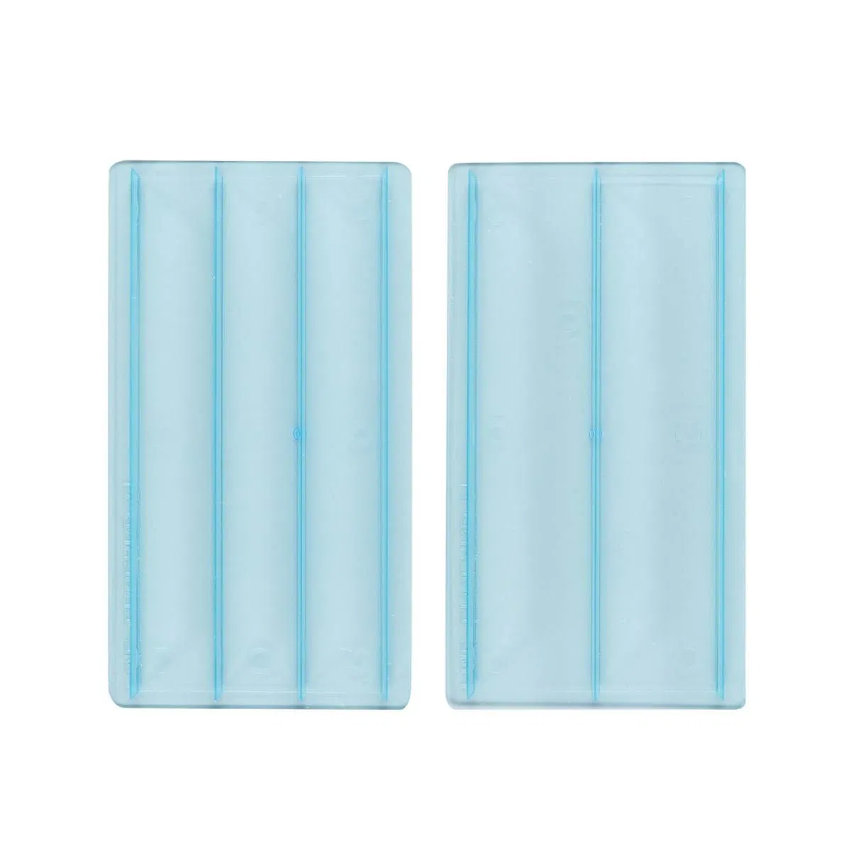 - Mit diesen Cuttern können Sie Streifen in 2 verschiedenen Breiten schneiden – klein: 0,8 cm (0,3 in) und groß: 1,2 cm (0,5 in).