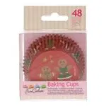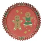 Die Muffinförmchen haben ein fröhliches Muster aus Lebkuchenmann, Sternen und Zuckerstangen und bestehen aus hochwertigem Backpapier.