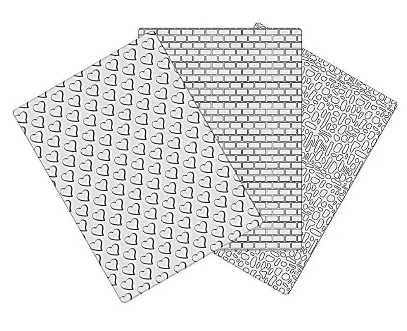 Ein Set mit drei praktischen Prägematte für Fondant, Blütenpaste, Modellierschokolade oder Marzipan. Ganz einfach und schnell lassen sich hiermit wunderschöne Flächenmuster für Dekoration herstellen. Die Matte ist flexibel und aus durchsichtigem lebensmittelechten Plastik hergestellt.